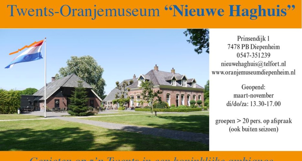 Op zaterdag 13 september is het Oranjemuseum in Diepenheim geopend van 13.30 tot 17.00 uur tijdens Open Monumentendag.